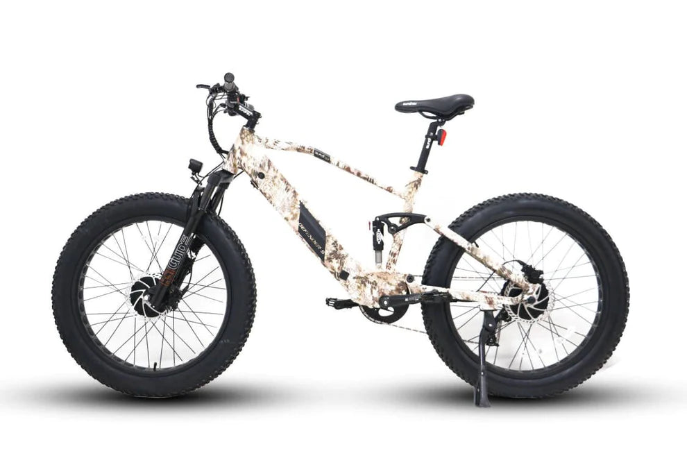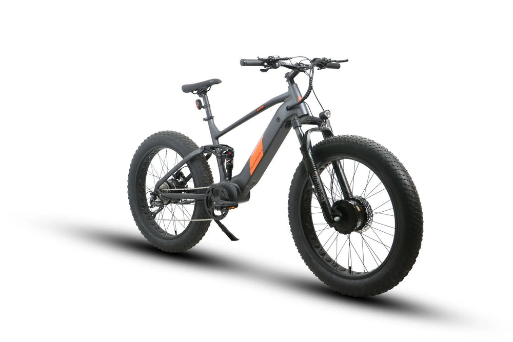 The Eunorau Defender S Electric Mountain Bike is designed for any terrain & weather conditions with its powerful 1500 watt dual hub motors. It also offers long-lasting rides with its high-capacity battery & optional upgrade. The dual suspension system, removable battery system & sensitive hydraulic disc brakes make this bike a comfortable and safe choice.