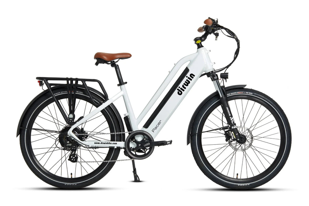 This is the Dirwin Dirwin Pacer Electric Commuter Bike Powerful, efficient, and innovative, the Dirwin Pacer can do it all! It's a versatile 2.2-inch tire touring/all-road electric bike built for street, recreational, commuting, and even gravel and hard-packed dirt trails. With a fully integrated battery, lights, color LCD display, and a front suspension fork, the Pacer provides ultimate comfort and safety no matter what time of day or terrain you’re riding. It features a step-thru frame for easy mounting and dismounting, and the 500W/1000W peak power system offers both a flexible 5-level pedal assist and throttle mode. One of the main selling points of the Dirwin Pacer Commuter 500W 48V Electric Bike is its versatility and convenience. With a fully integrated battery, lights, and front suspension fork, you'll have a comfortable and safe ride no matter the time of day or terrain. Plus, the 500W/1000W peak power system offers both pedal assist and throttle mode options, giving you the flexibility to choose which mode works best for you. So whether you're commuting to work, riding for recreation, or exploring gravel and dirt trails, the Dirwin Pacer can do it all.
