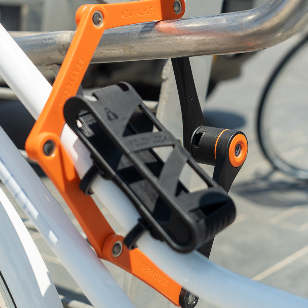 A premium folding bike lock features the best ratio between weight, strength, and size.