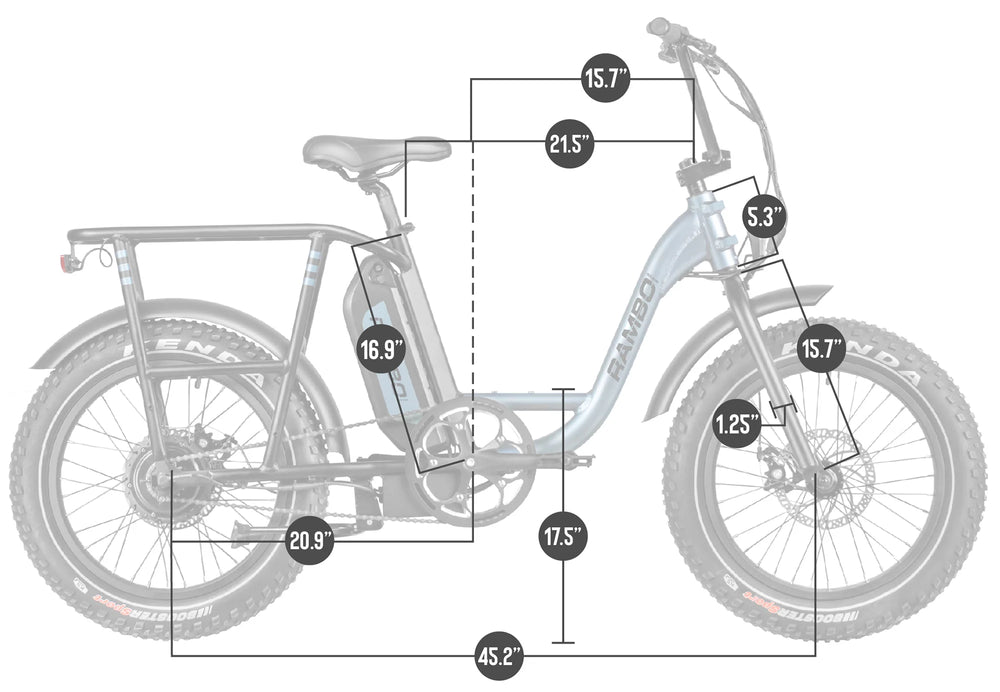 Samsung battery cells are one of the most reliable battery cells on the market, they offer an industry leading 800 charging cycle life span. This reliability ensures your bike will be ready when you are, whether it is hunting, weekend riding or daily commuting. The easy slide on/off design allows for quick and easy removal for charging or storage. Rambo’s external battery back offers a max distance of 35 miles! Not all batteries are equal. In fact, not even close. Many e-bikes that are advertised on the market today at a certain amp hour fall very short. Real life tests show Rambo outperforms again and again! Don’t be fooled for less the than best!