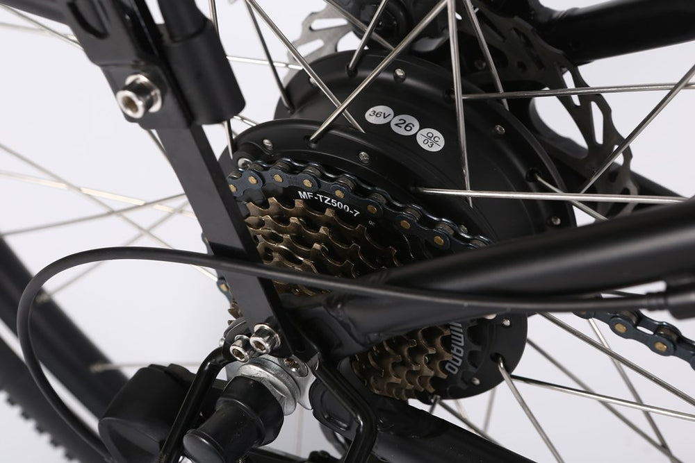 The Trail Maker Elite Max 36 Volt Electric Mountain Bicycle is a Lithium Battery powered Electric Bicycle, running on a 350 Watt Zero Resistance rear hub motor.