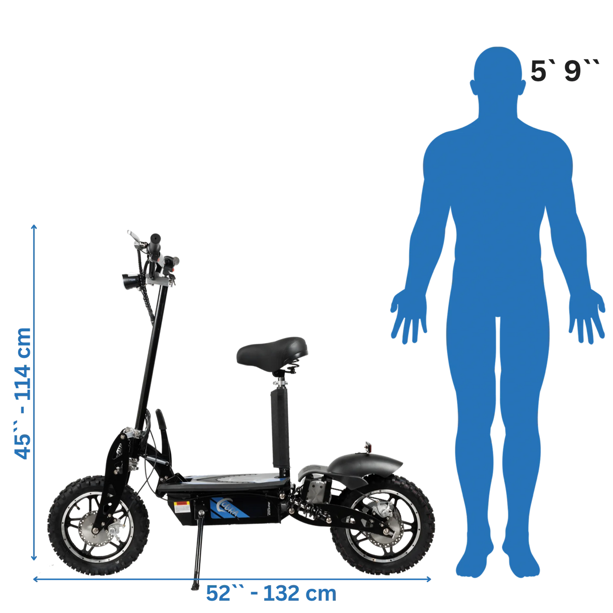 The Cobra kick scooter is built for teenages and adults with different heights. The seat can be adjusted from 31" to 37" (80cm - 94cm).