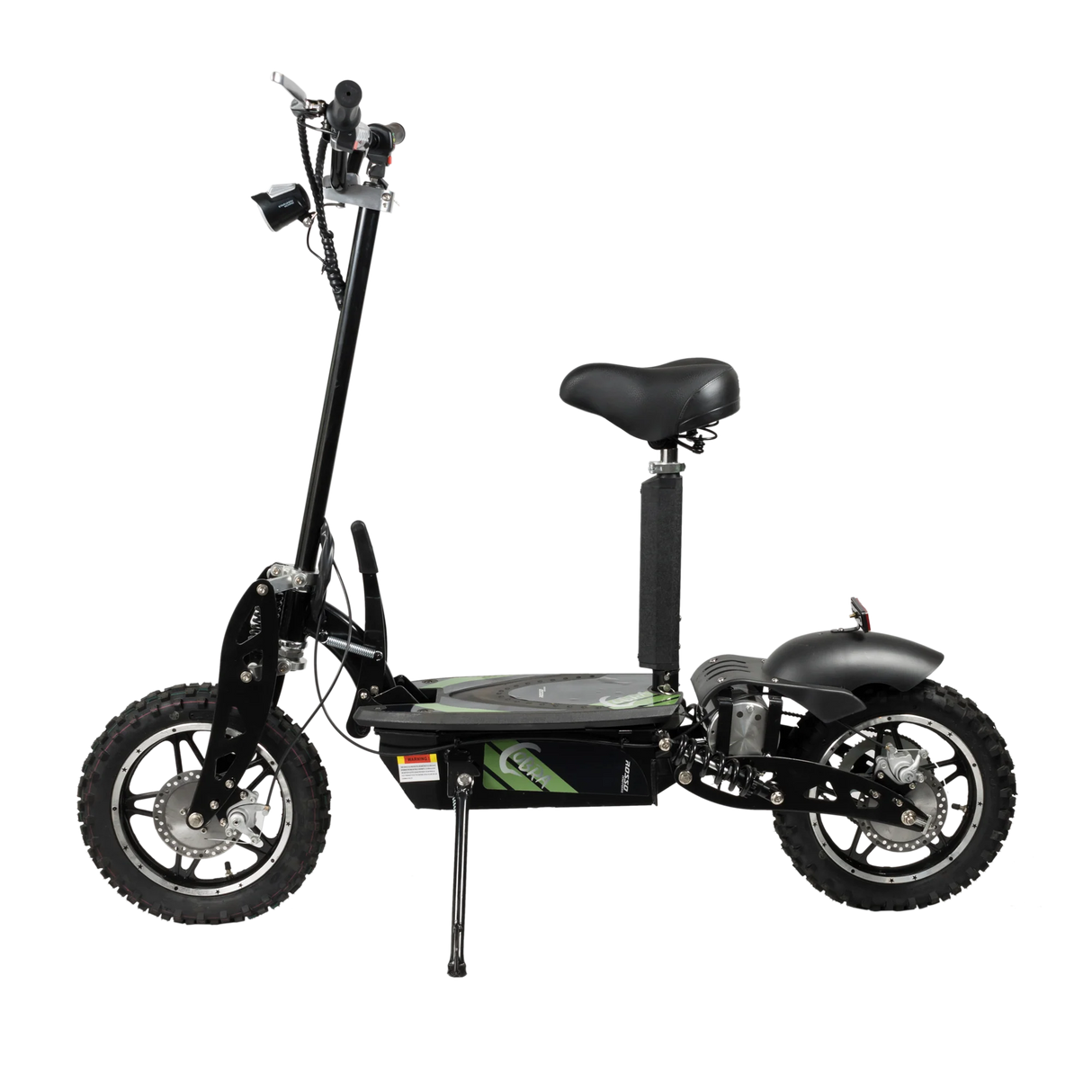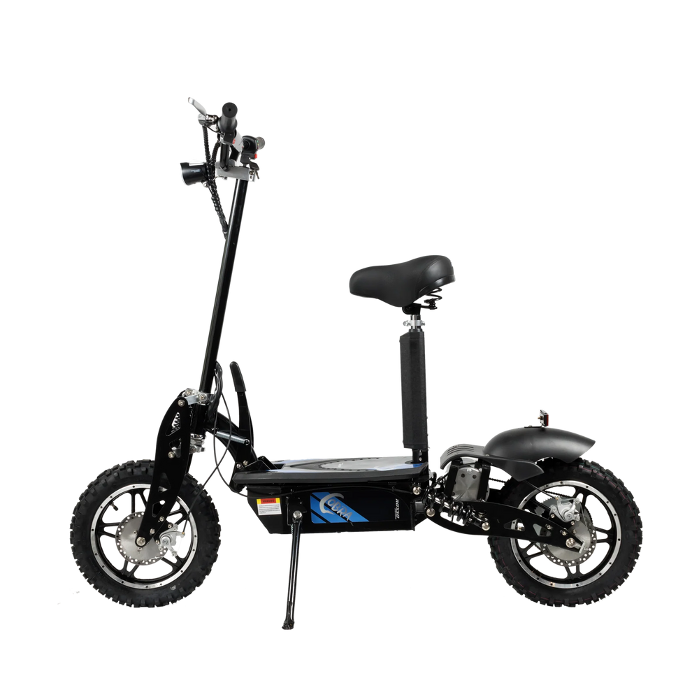 The Cobra kick scooter comes with real time battery level display. Ride up to 2 hours on a single charge. Achieve a top speed of 18 mph (30 km/hr) mph with the powerful 1000W motor. Also, the battery compartment is designed to protect the battery from outside debris and mud.