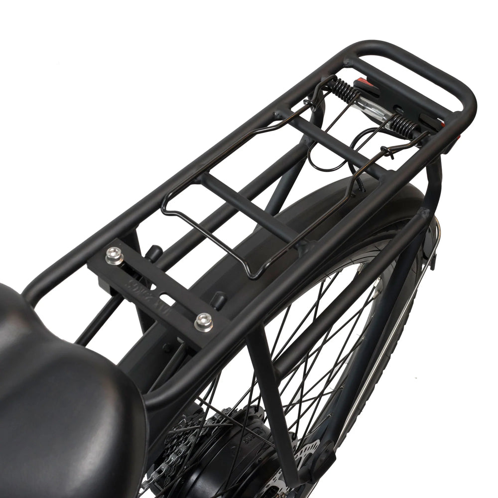One of the most notable features of the Storm is its rear LED stoplight for extra visibility and safety. This feature ensures that you are easily visible to other road users and makes you safer when riding at night or in low-light conditions. The rear cargo rack can hold up to 25kg, providing ample space to store your belongings while on the go. The bike also comes with a hidden frame battery which not only looks sleek but also offers extra protection to the battery.