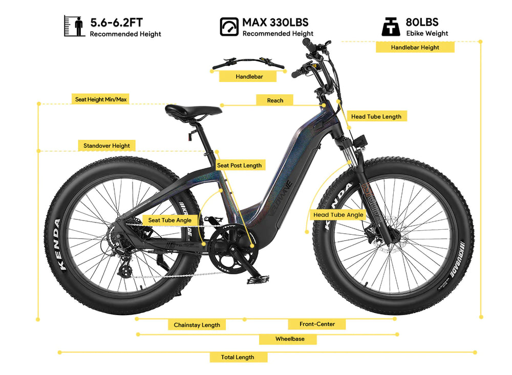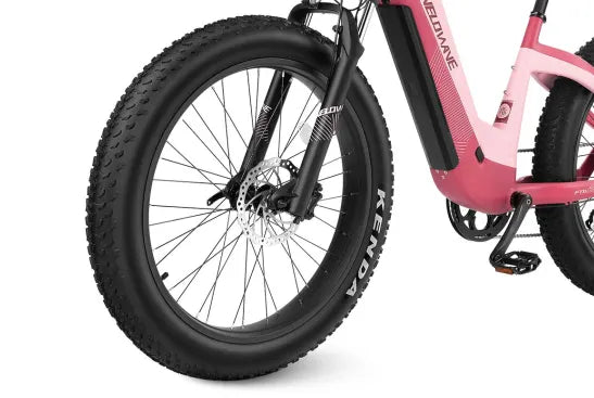 Kenda 26"*4.0" Fat Tire, anti-skidding, wear-resistant, and adapt to snow, sand, and various terrains. The fat tire enables smooth riding on rugged terrains means you can get more cycling experiences.