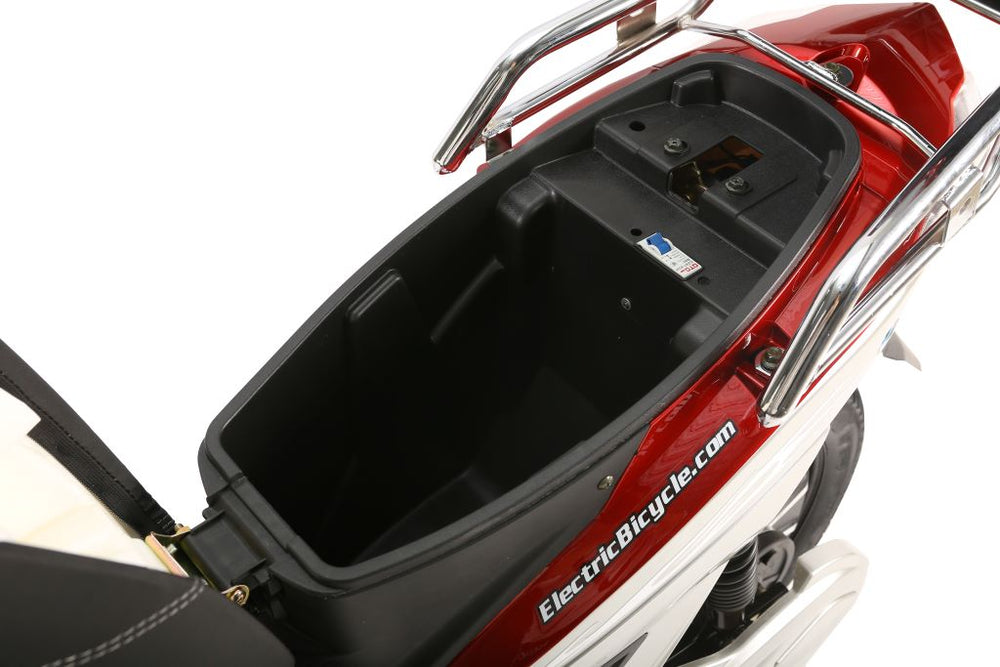 The motor is installed in the center of the rear wheel and the e-bike is powered by a large 60-volt high-power battery (20 AMPS each battery - The Largest Battery X-treme Offer) that can be re-charged more than 500 times. The electric bicycle will travel 30 - 35 miles on a single charge.
