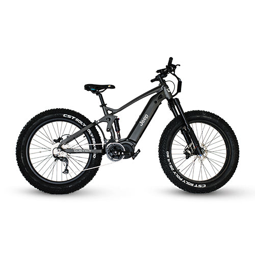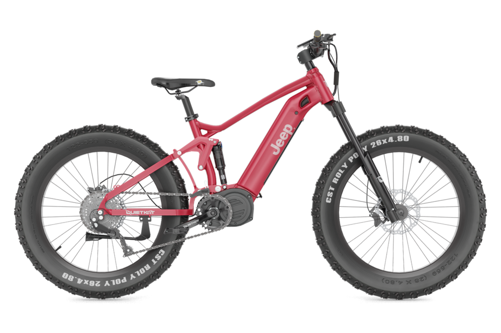 Whether you take on a single track through the woods or an all-mountain ride, the Jeep® eBike lets you harness the off-road capabilities of a Jeep® with the industry-leading technology of a QuietKat. Its fat tires stick when you need them and the full suspension soaks up trail bumps for a smooth ride.